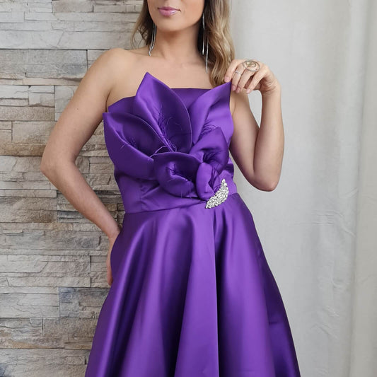 VESTIDO DE CERIMÓNIA ACETINADO LISO ROXO