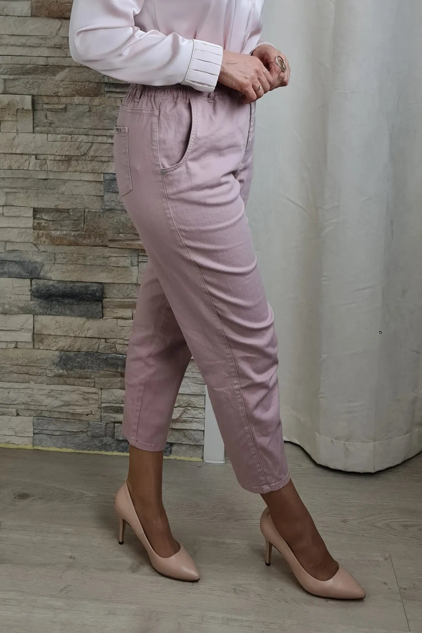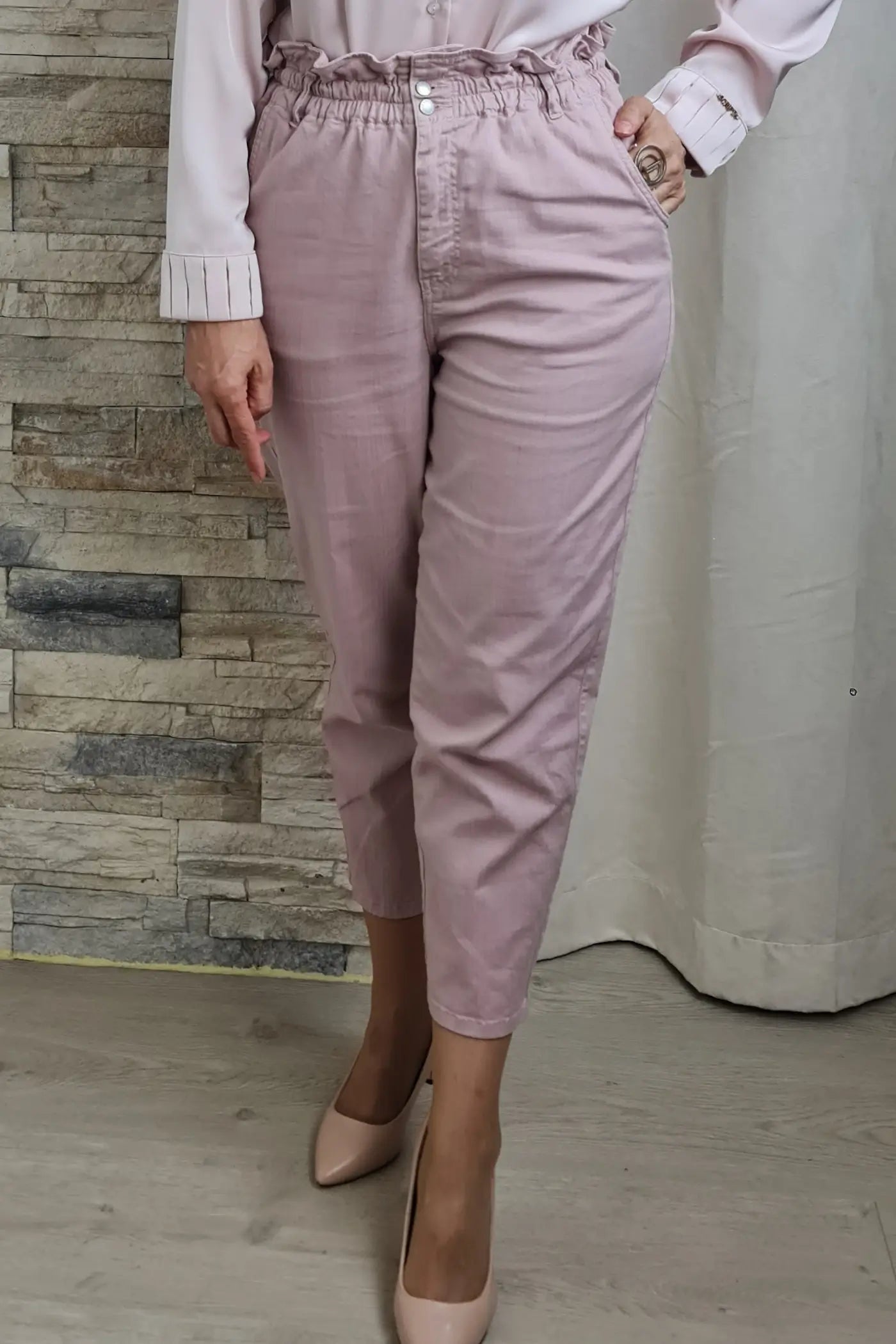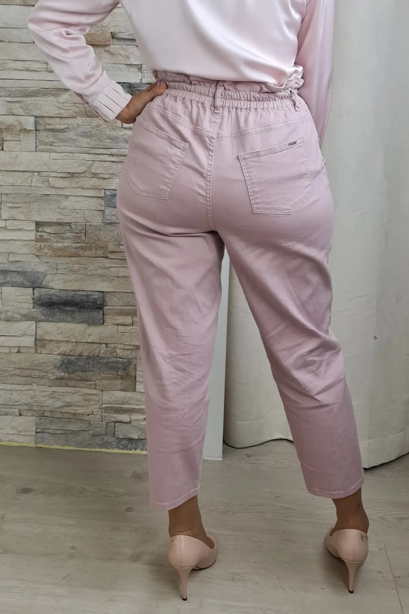 O design é prático com um toque feminino. Com a cintura franzida e elástica, destacam-se pelos bolsos laterais e pelo comprimento cropped, que realça os tornozelos. O acabamento casual confere um ar descontraído e moderno.