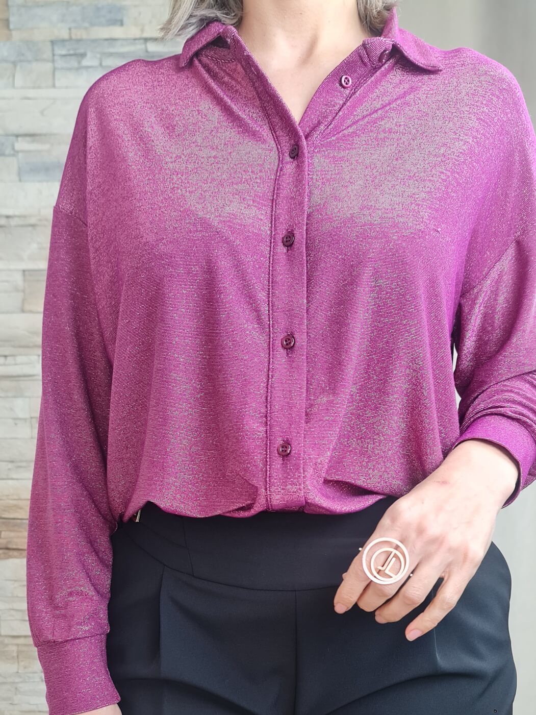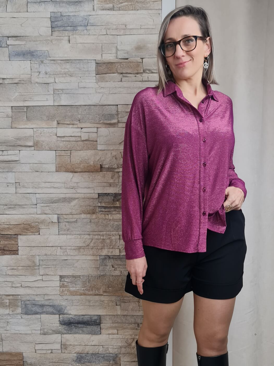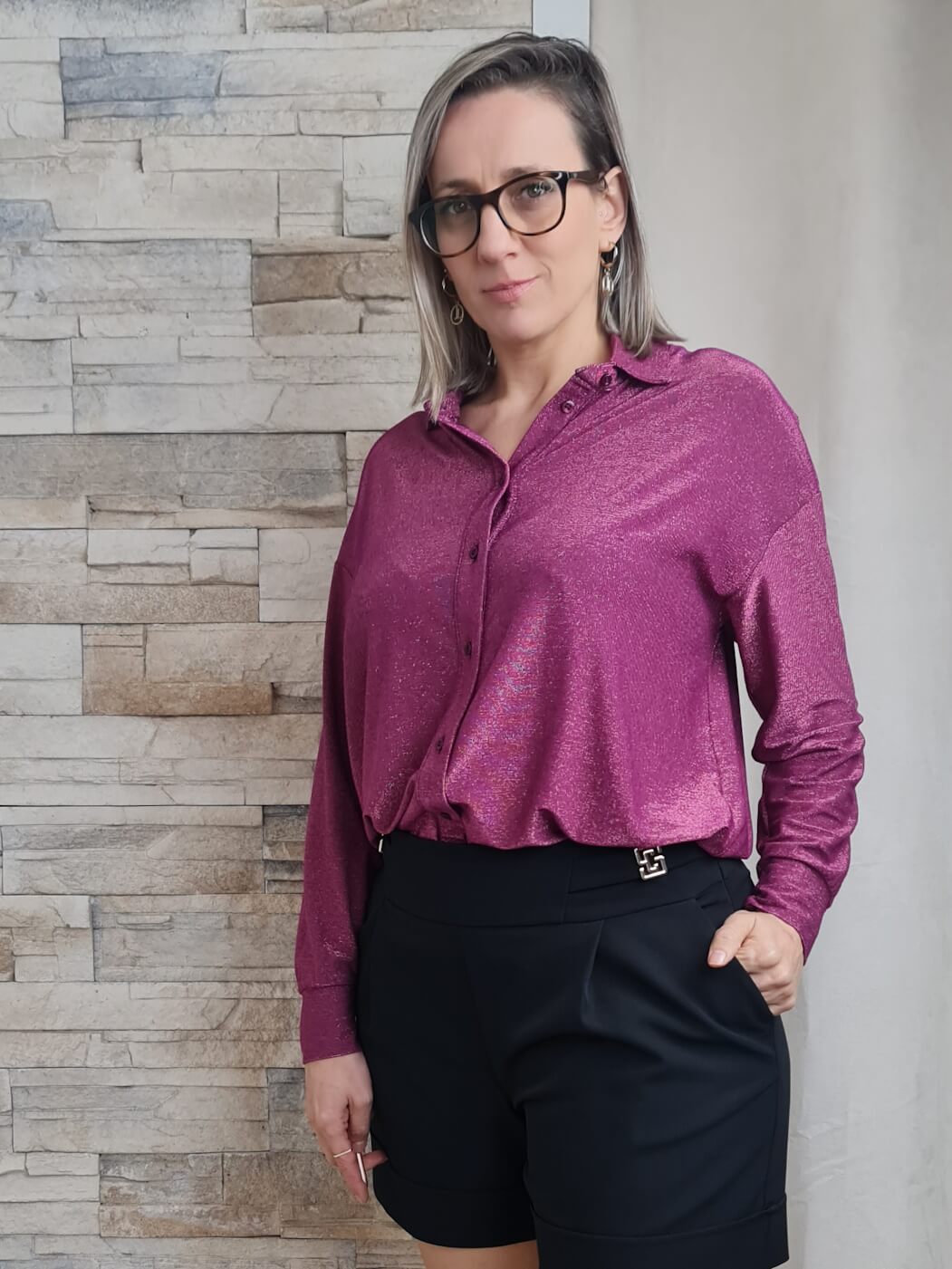 A blusa é uma peça moderna e sofisticada, ideal para looks estilosos e marcantes. O design apresenta um tecido acetinado em tons de rosa vibrante, com um leve brilho que confere um toque glamoroso ao look. As mangas compridas e o corte reto garantem conforto e um caimento elegante.