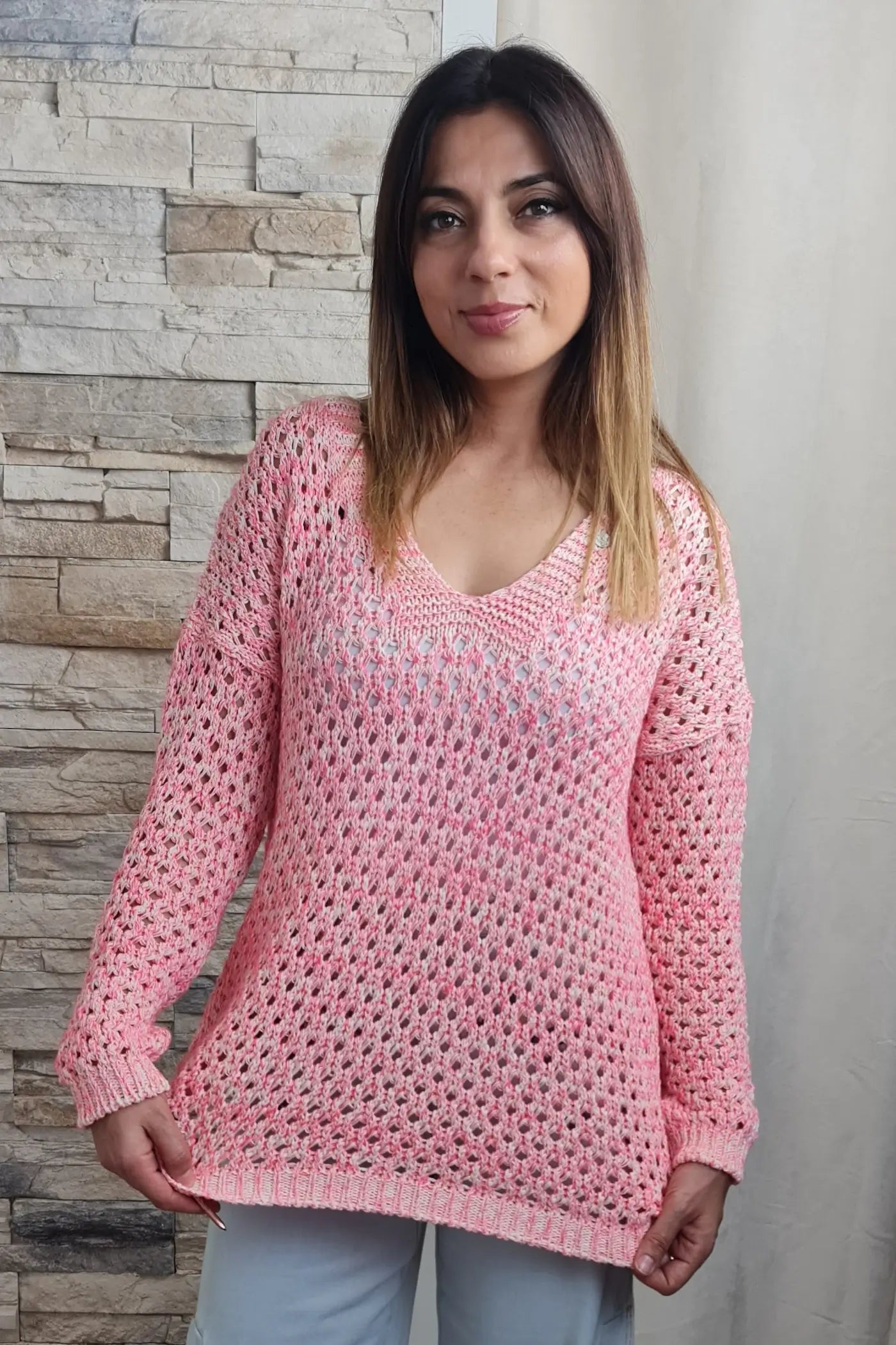 A "Leveza Romântica" é a camisola ideal para quem procura na moda uma forma de se expressar com autenticidade, sentindo-se confiante. Combine-a com calças de cintura subida em cores neutras, como o branco ou o bege, para um look que equilibra o romance da malha e a atitude urbana.