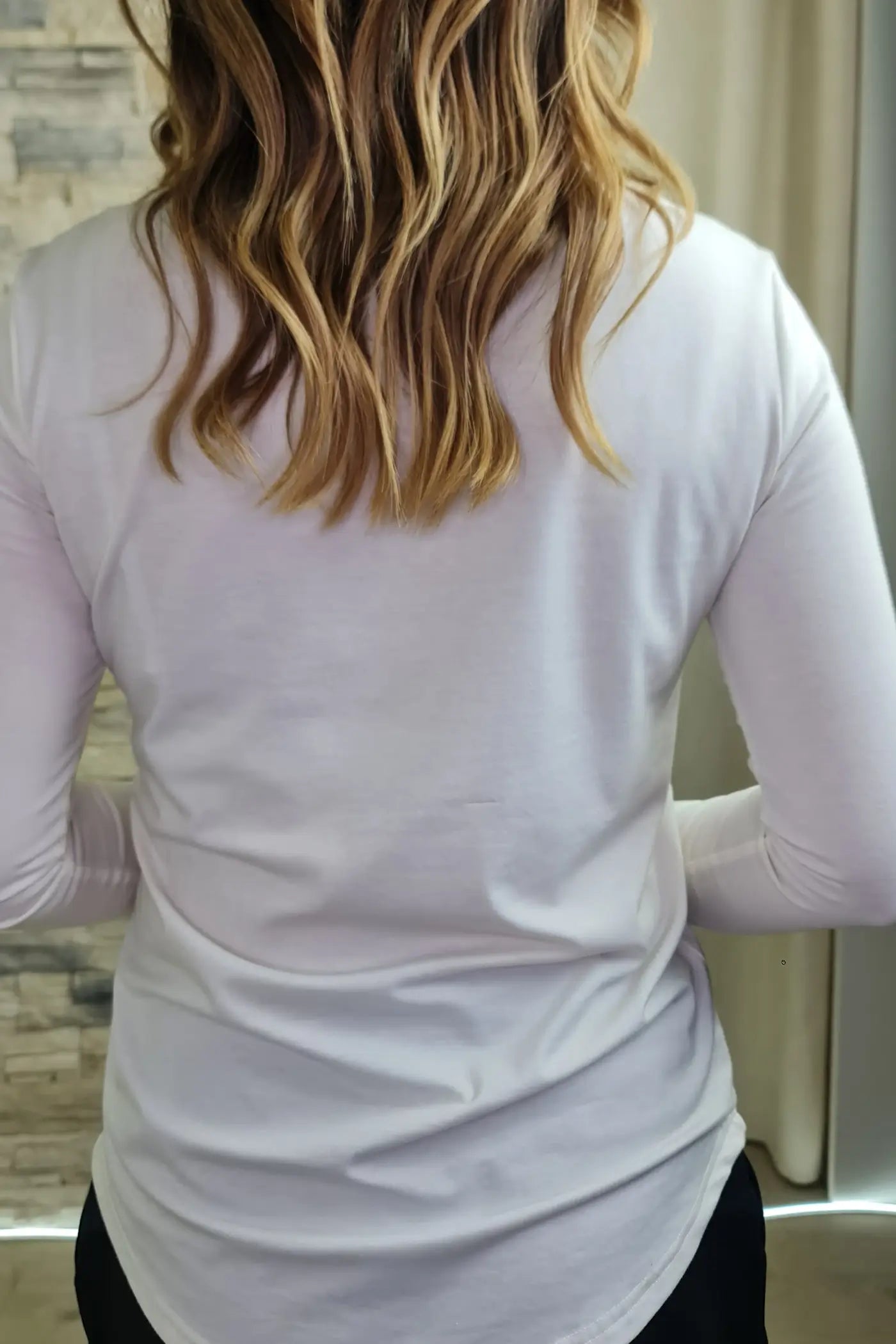 Ao vestir esta camisola, sentirá o conforto do algodão suave que envolve o corpo. A sua cor branca clean confere um visual fresco e descontraído, pronto a coordenar com qualquer peça de ganga ou neutra. O corte folgado (regular fit) com decote redondo e mangas compridas é perfeito para um look casual e elegante.