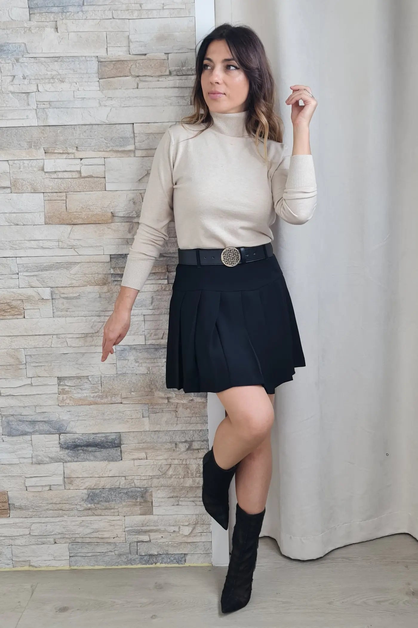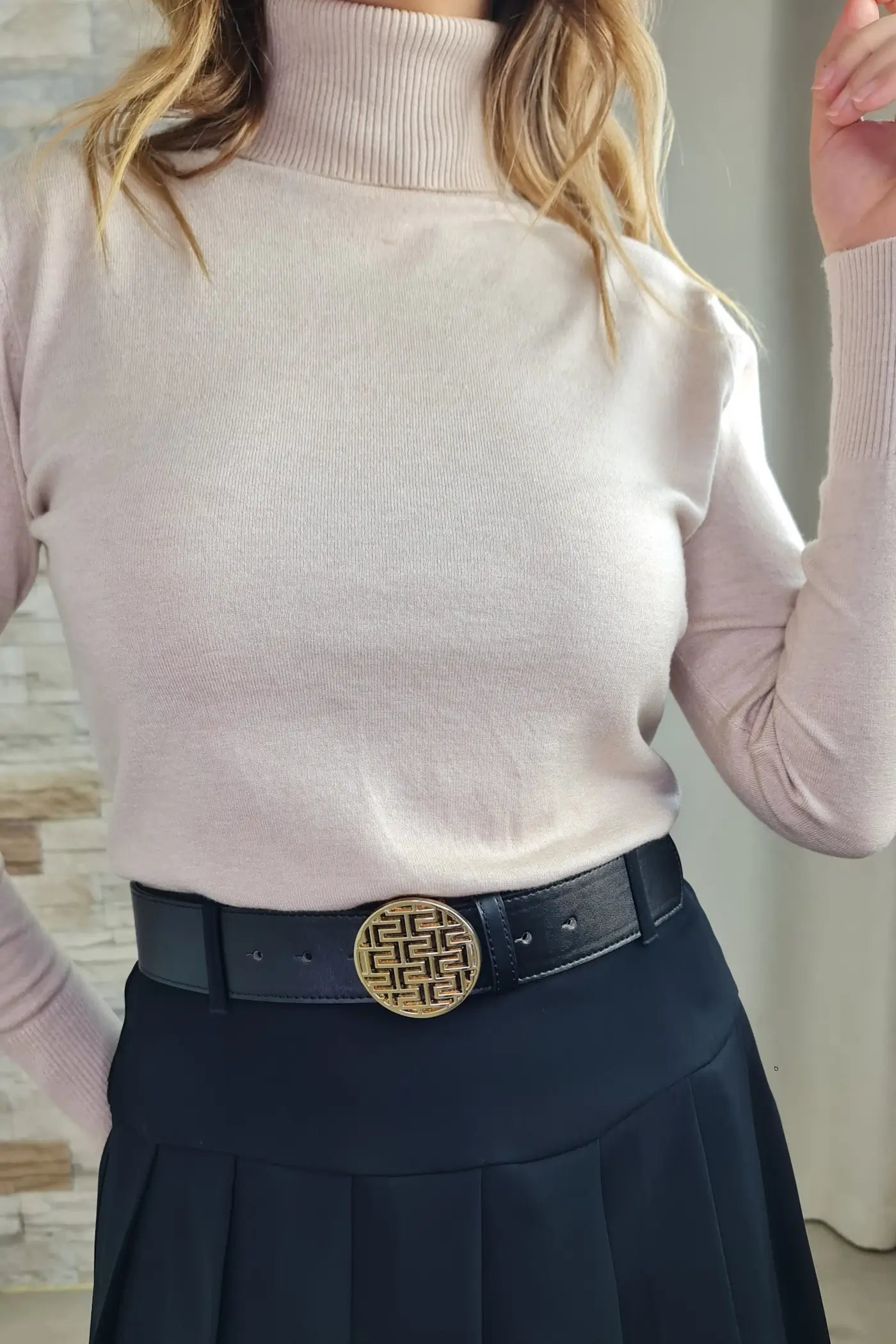 Ao vestir esta camisola, a sua cor bege, que evoca a serenidade de um dia calmo, proporciona uma sensação de calma e otimismo. O seu corte justo e a gola alta, confere-lhe um visual elegante e confiante, sem comprometer o conforto. O seu design versátil e elegante permite que a use em diversas ocasiões, seja para um encontro de trabalho a um almoço com amigas.