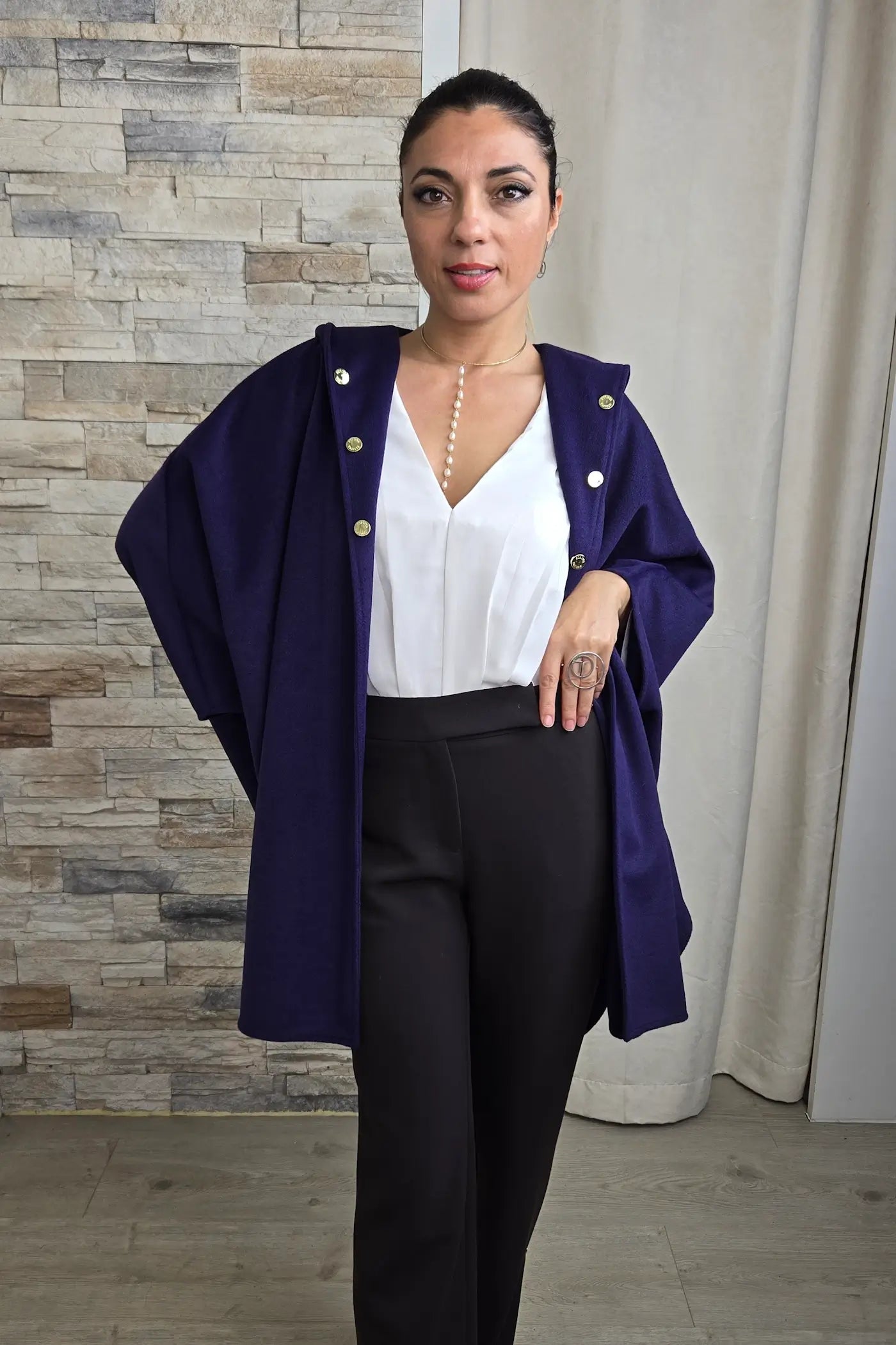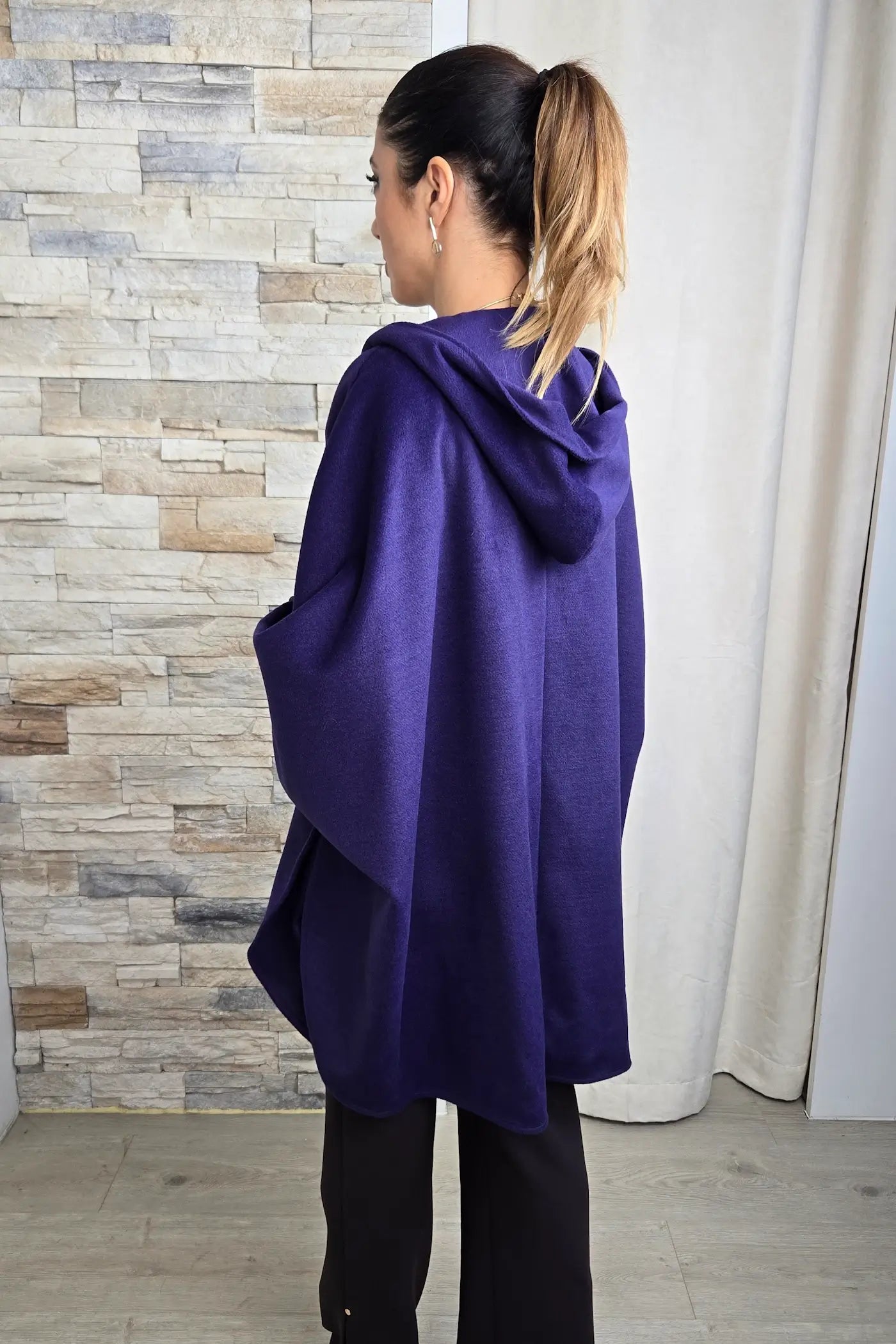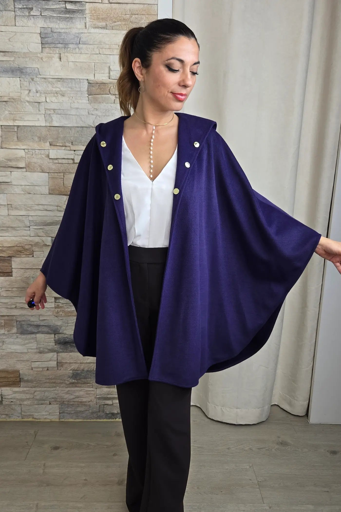 Ao vestir esta capa, sentirá o aconchego do tecido e a profundidade e sofisticação da cor roxo, uma tonalidade que evoca criatividade e distinção.