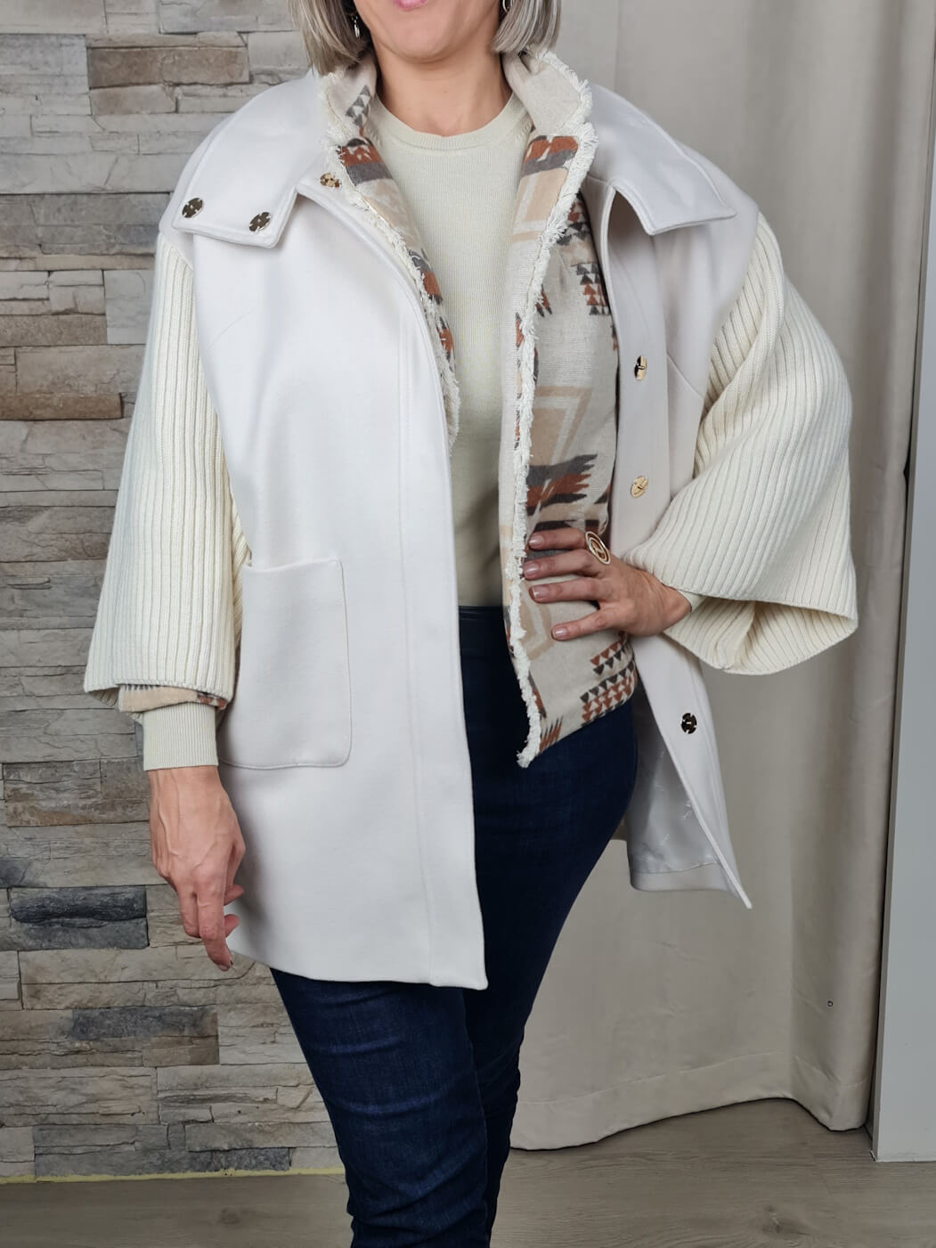 Este casaco combina na perfeição conforto e estilo. Esta peça foi projetada para adicionar um toque de elegância casual ao seu guarda-roupa, mantendo-a quente e aconchegante com um visual sofisticado.