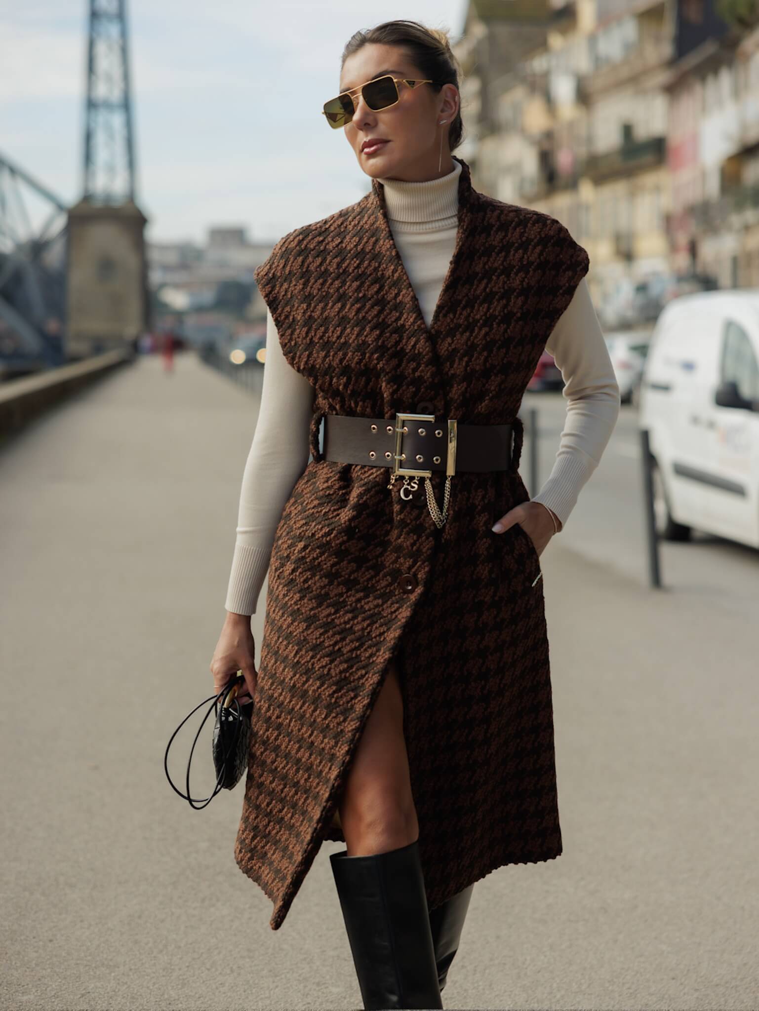 Este colete foi pensado para momentos em que você procura conforto, destaque e uma injeção de estilo atemporal. Perfeito para um visual de trabalho elegante, um evento casual ou para adicionar um toque de inspiração e autenticidade ao seu quotidiano.