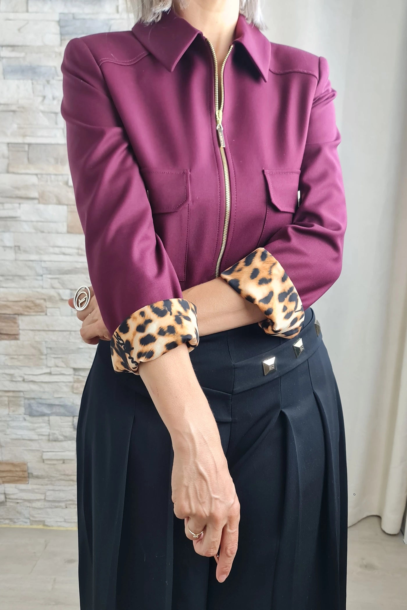 Ao vestir a "Silhueta Imponente", sentirá uma sensação de conforto e um toque de originalidade. O tecido de alta qualidade e o corte amplo proporcionam um caimento impecável e a convidam a expressar a sua personalidade confiante.