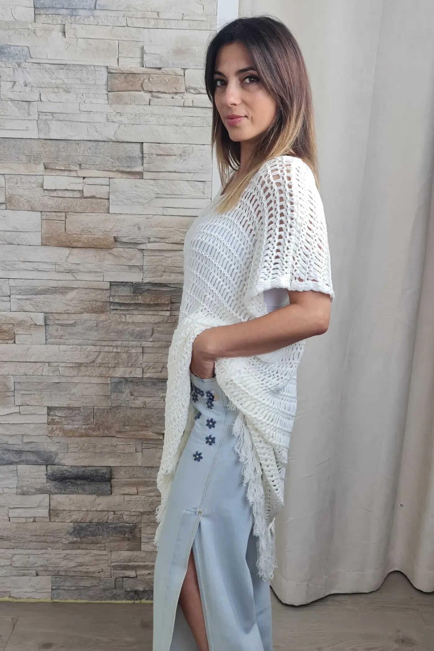 O Poncho "Essência Boémia" é a peça ideal para quem procura na moda uma forma de se expressar com autenticidade, sentindo-se confiante. Use-o sobre um top de alças, ou com uns jeans brancos para um look de fim de semana que irradia a sua luz por onde for.