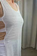 Ao vestir este top, o toque suave da malha e a cor branca, que evoca a pureza e a leveza, proporcionam uma sensação imediata de bem-estar. As aberturas laterais não são apenas um detalhe de design: são uma afirmação da sua coragem para quebrar regras, expressar a sua individualidade de forma única e mostrar a sua confiança ao mundo.