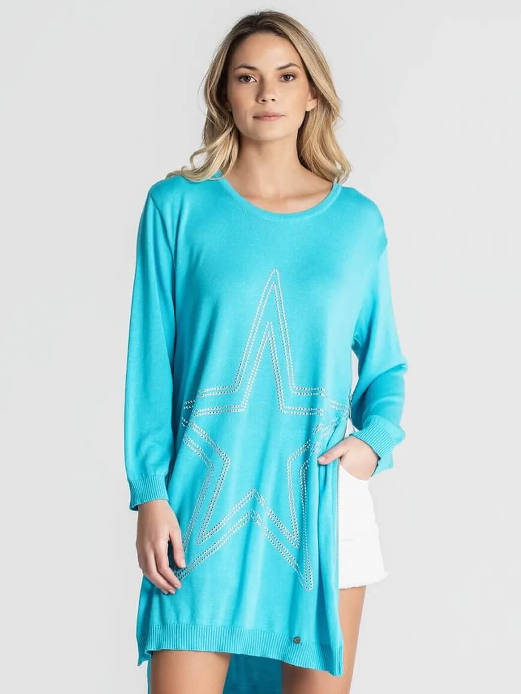 Ao vestir a "Brilho Estelar", sentirá uma sensação de conforto e um toque de originalidade. O tecido macio e o caimento solto e alongado proporcionam bem-estar e a convidam a expressar a sua personalidade autêntica.