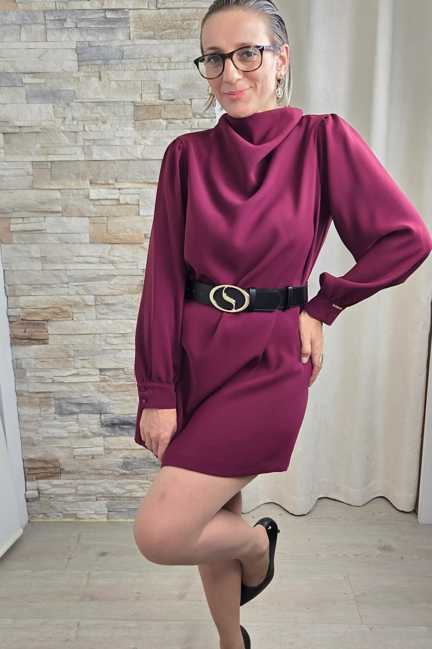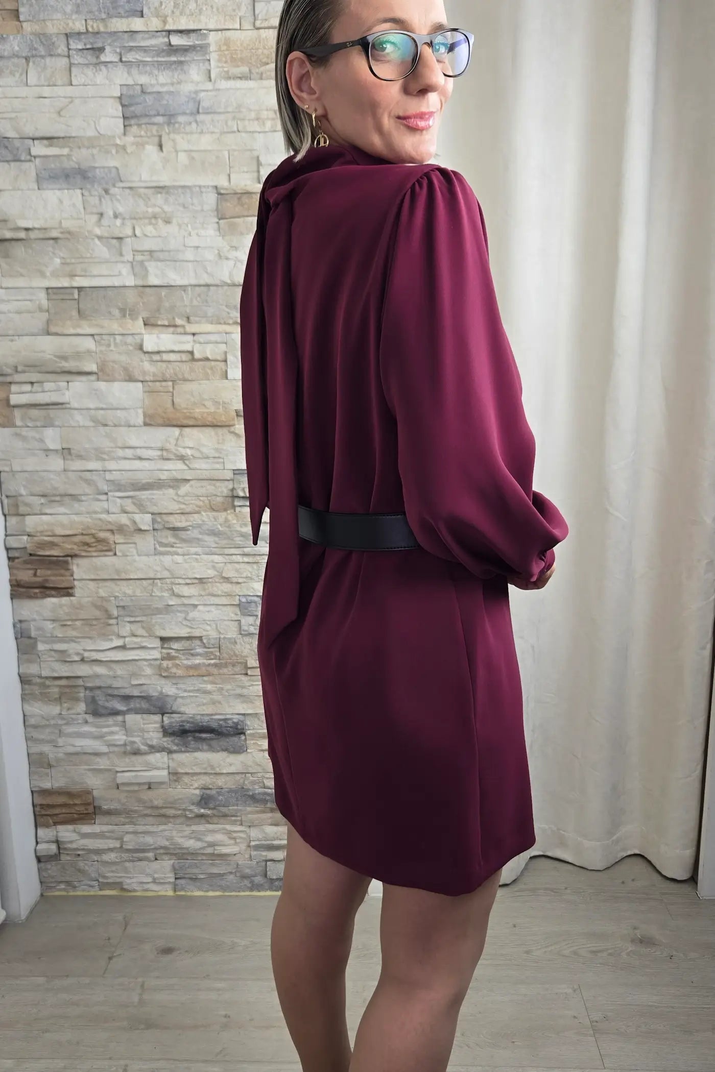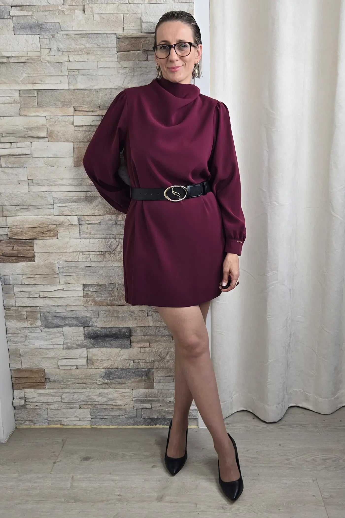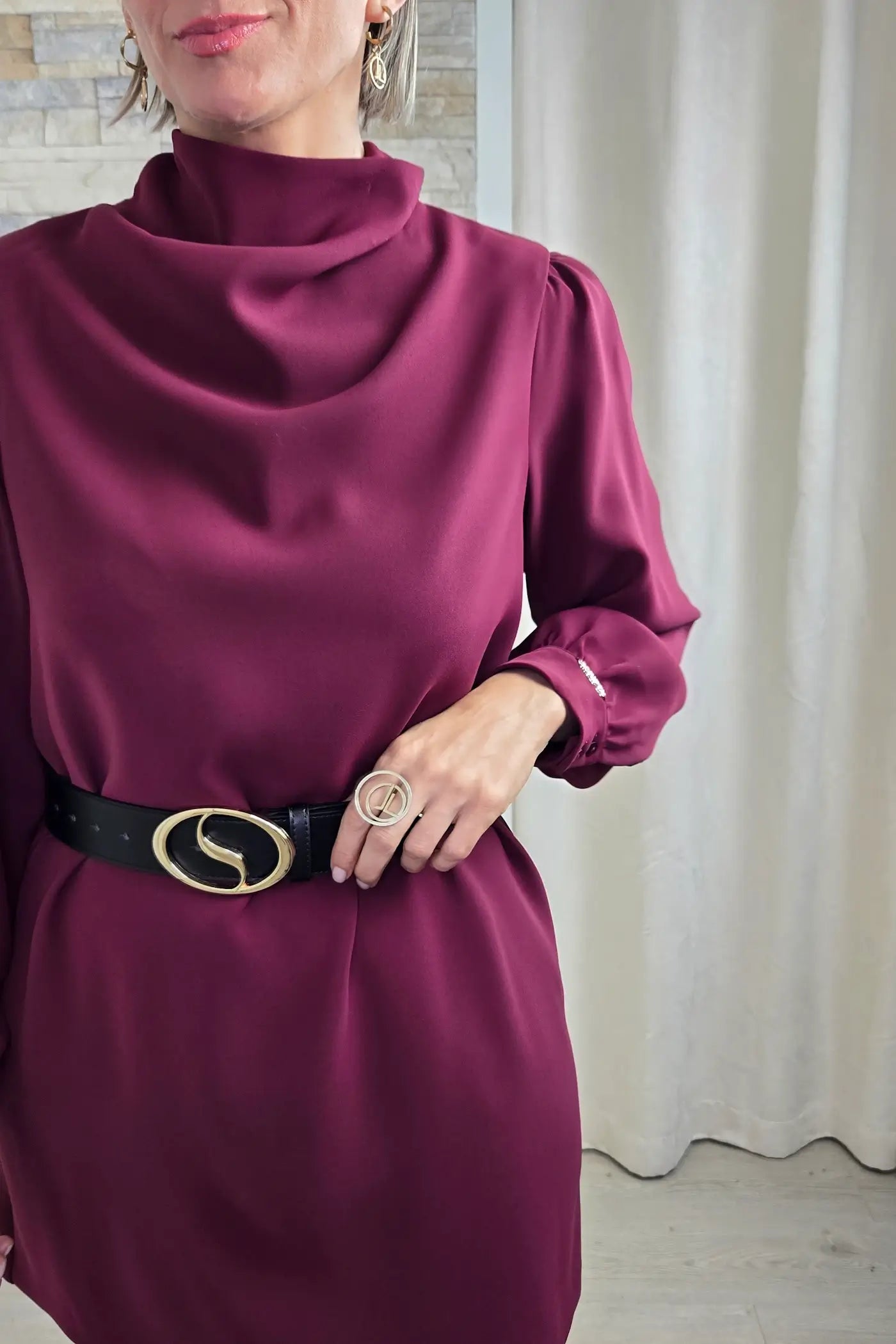 Ao vestir este vestido, sentirá a força e a sofisticação da cor bordeaux/vinho, uma tonalidade rica e intensa que evoca determinação e glamour.