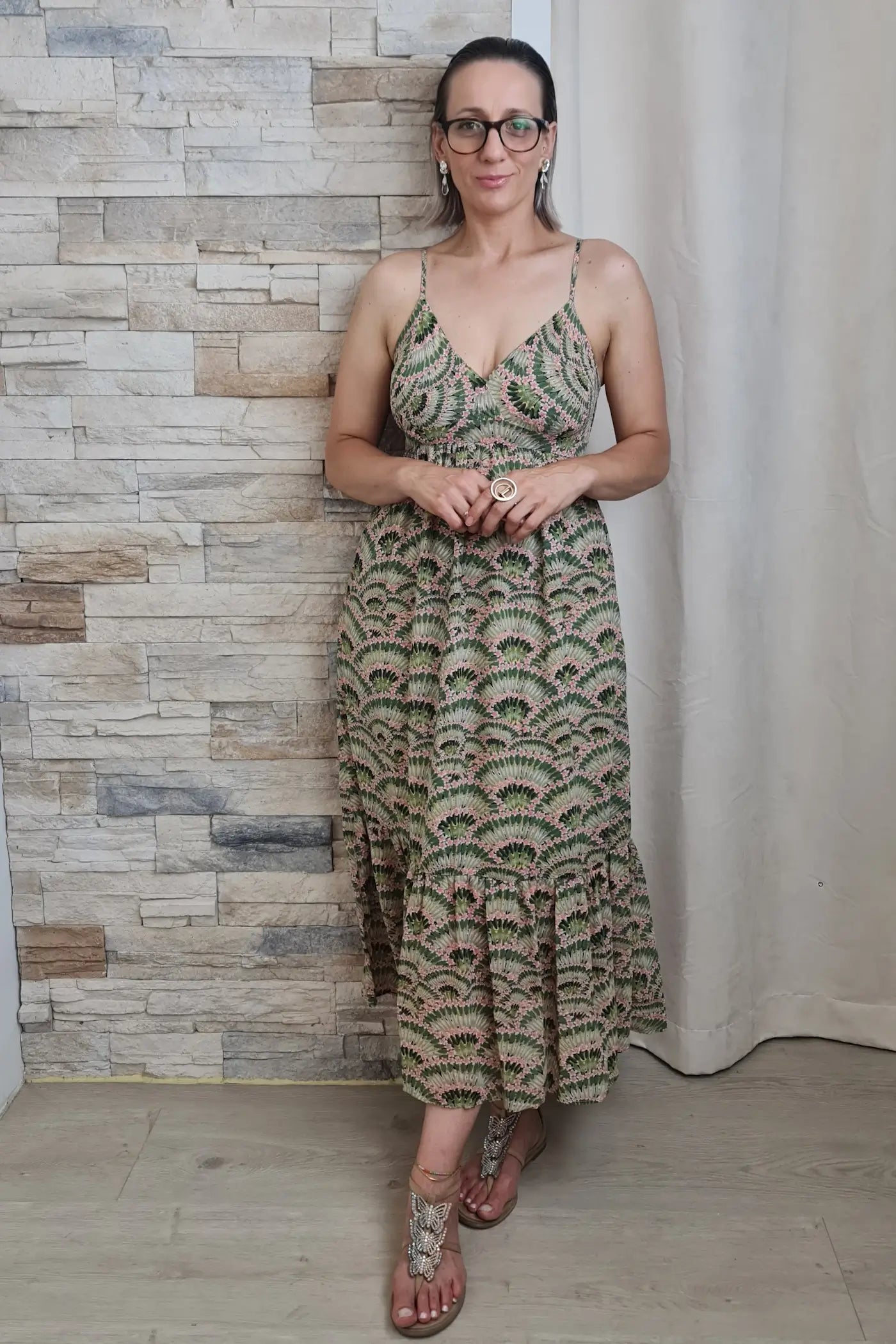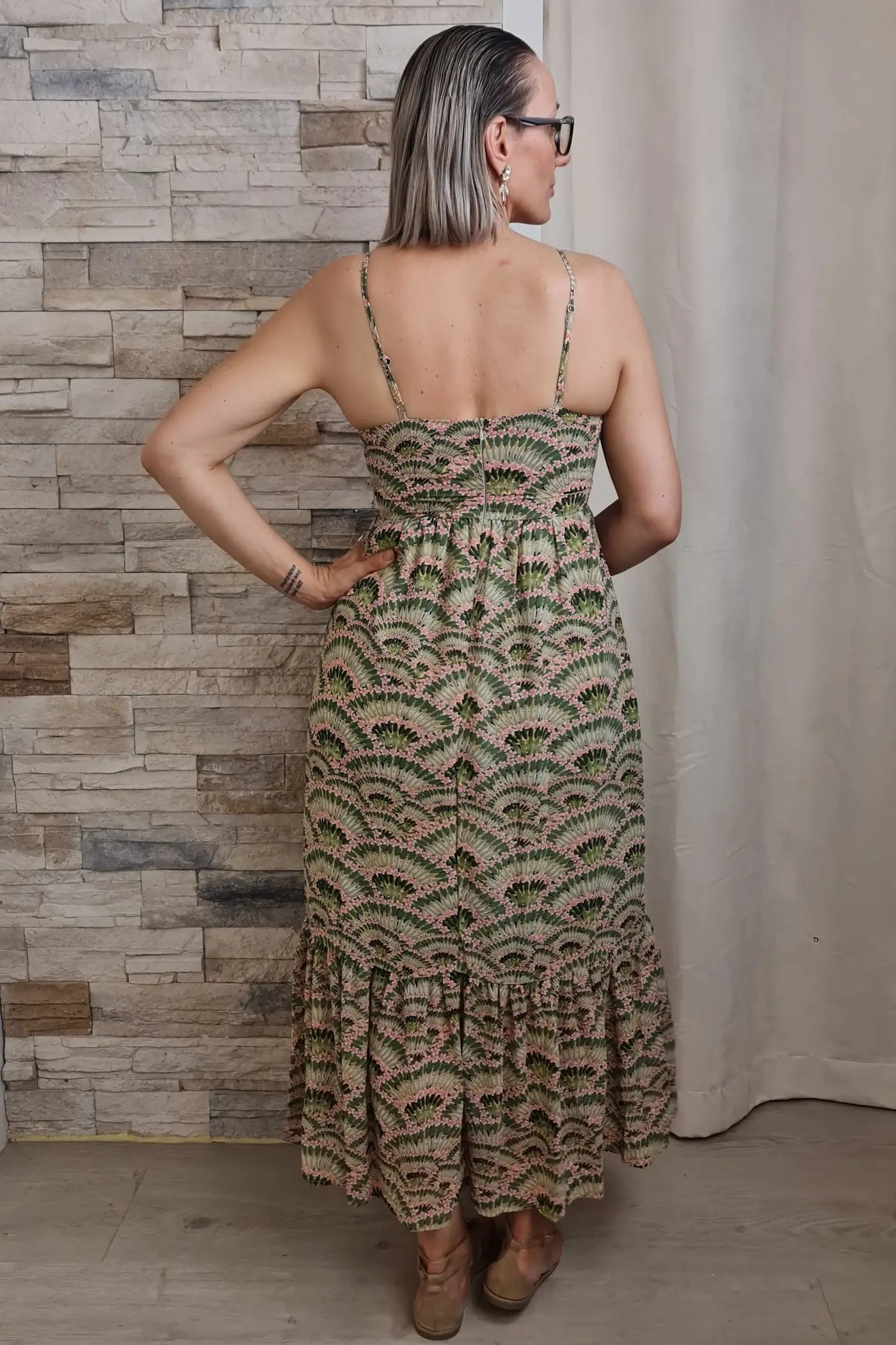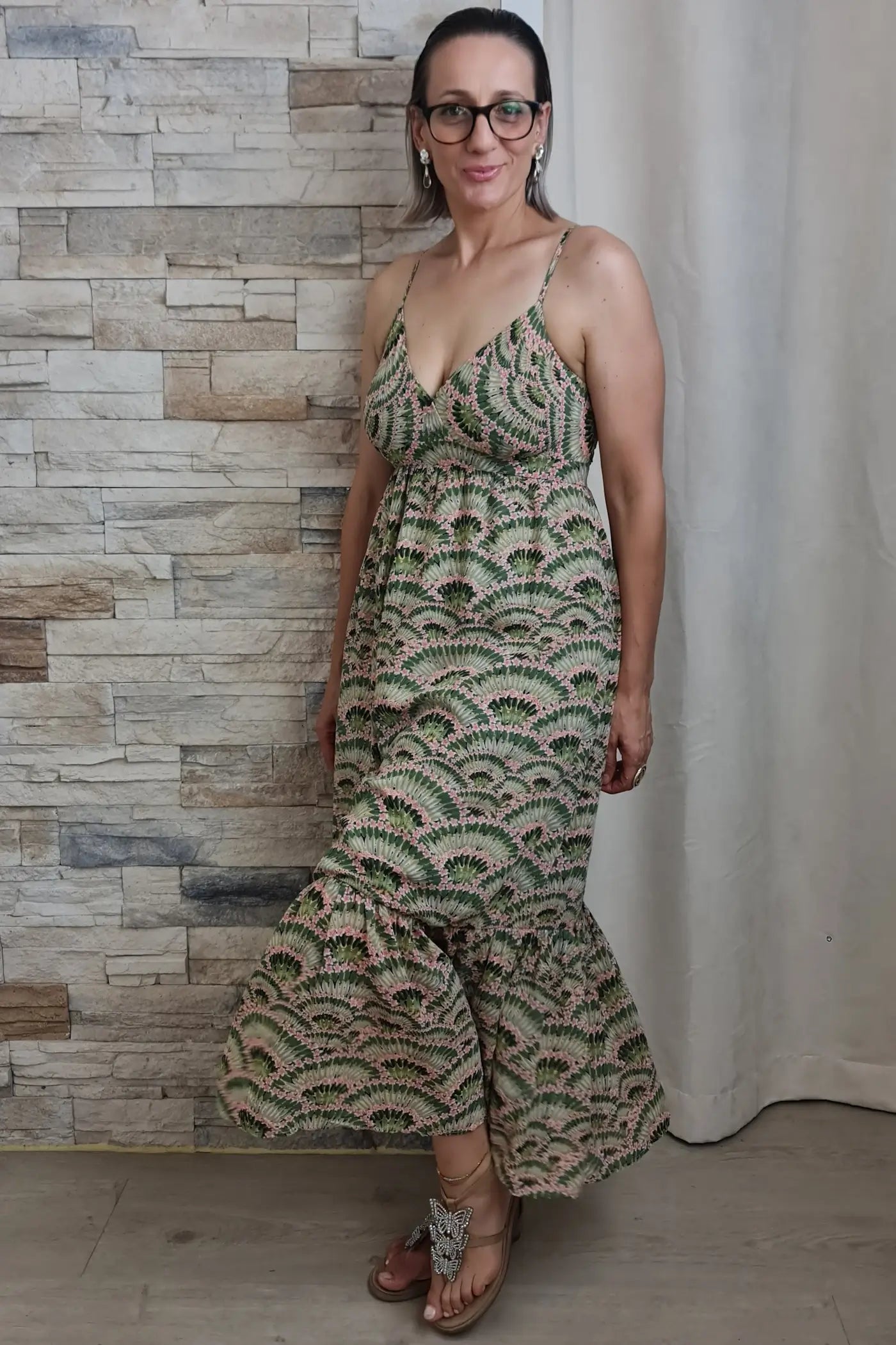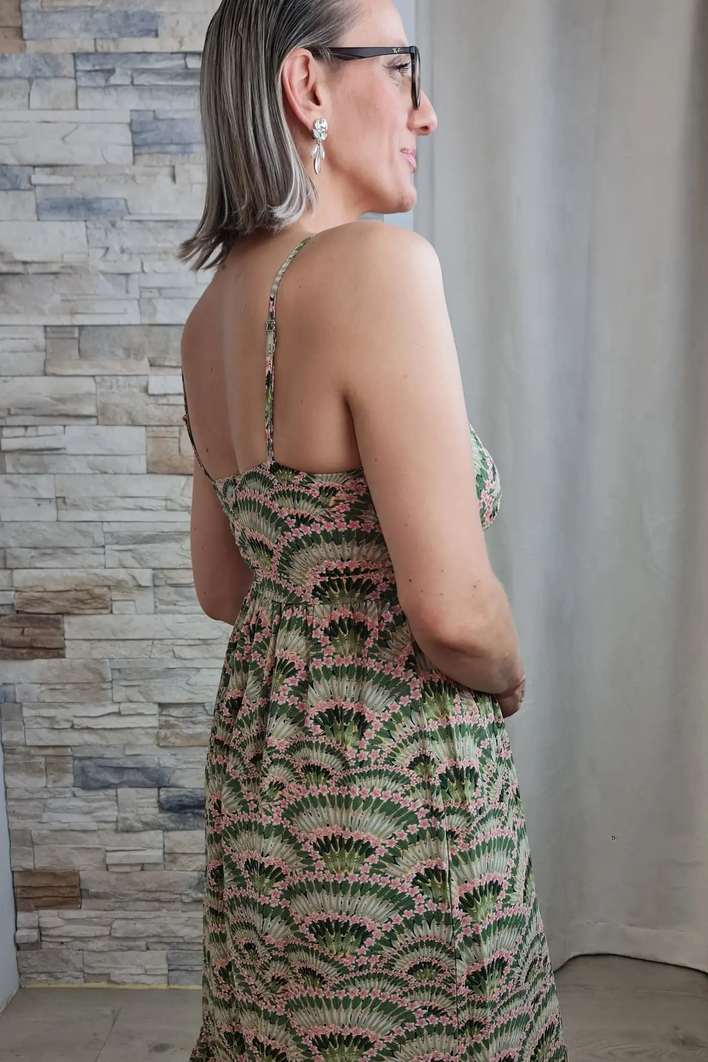 Este vestido foi pensado para momentos em que procura conforto, destaque e uma injeção de bem-estar. Perfeito para um evento especial, um encontro romântico ou para adicionar um toque de inspiração e autenticidade ao seu quotidiano.
