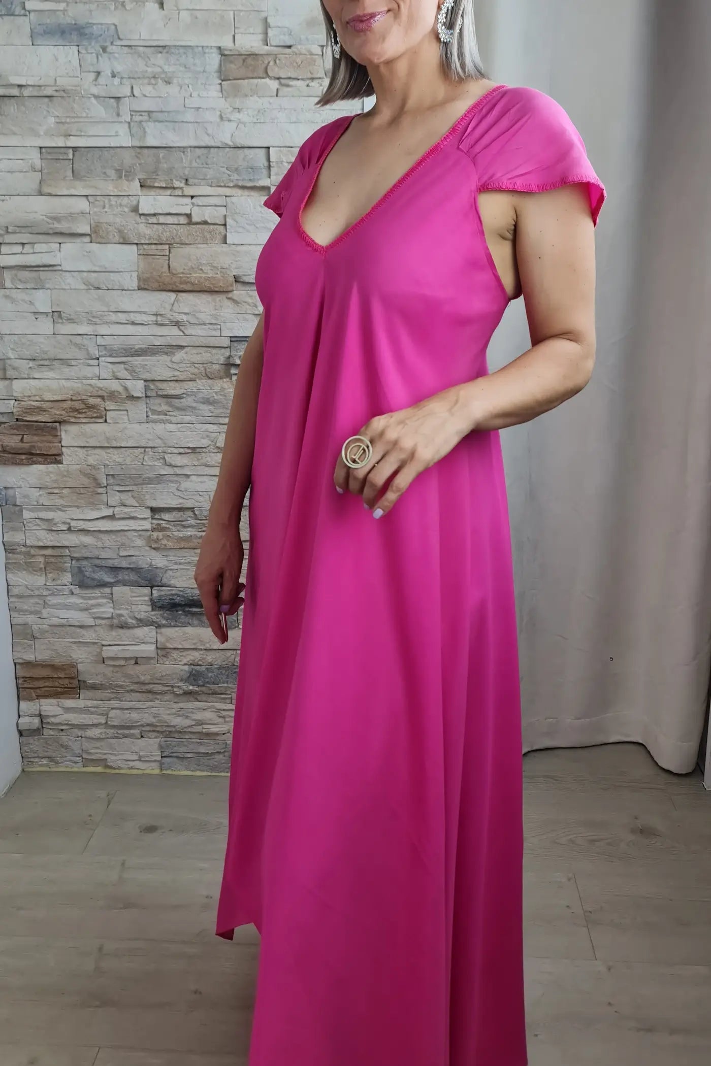Ao vestir o "Encanto Delicado", sentirá uma sensação de frescura e um toque de originalidade. O tecido fluido e o caimento maxi proporcionam conforto e a convidam a expressar a sua personalidade romântica.