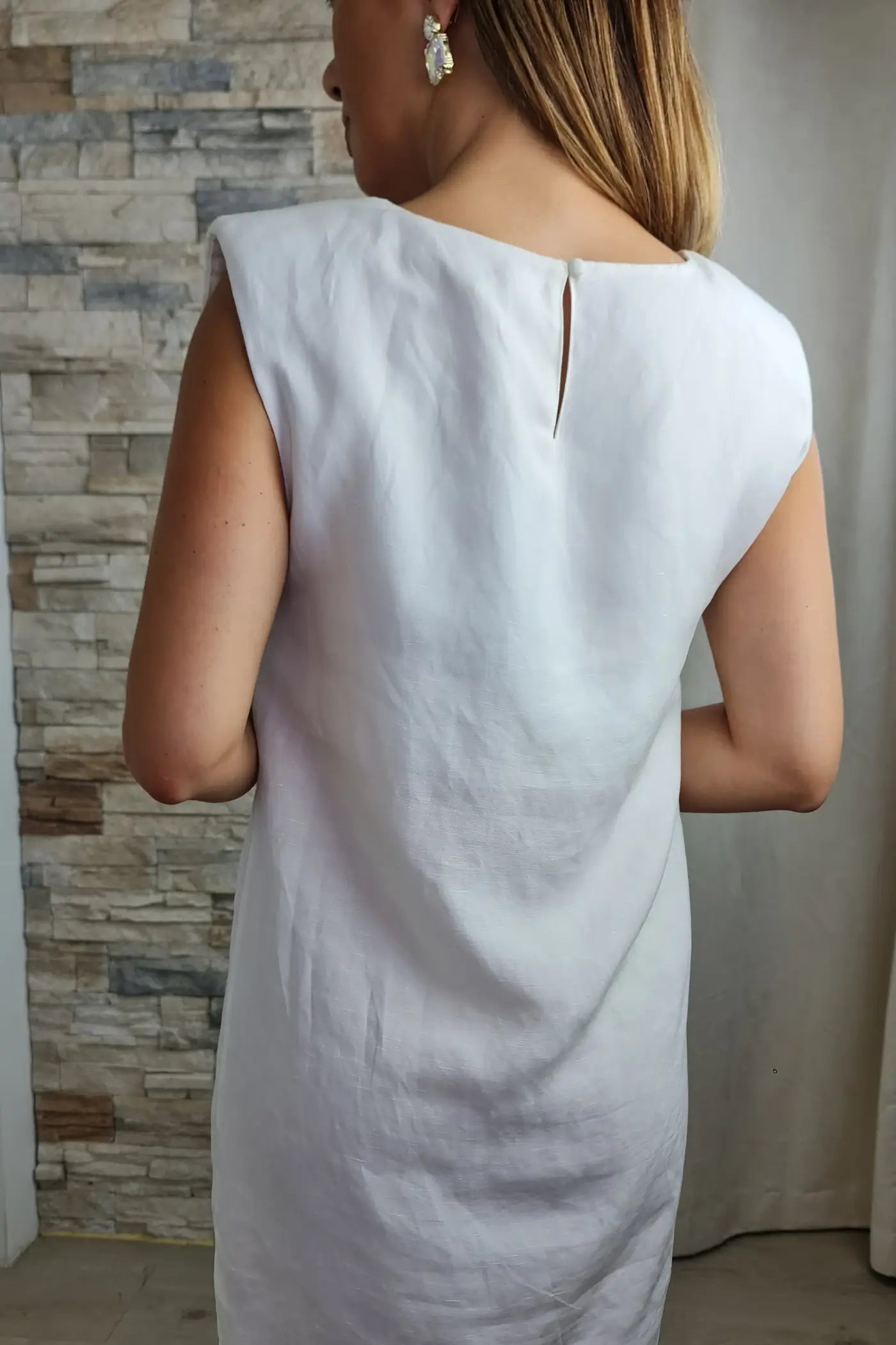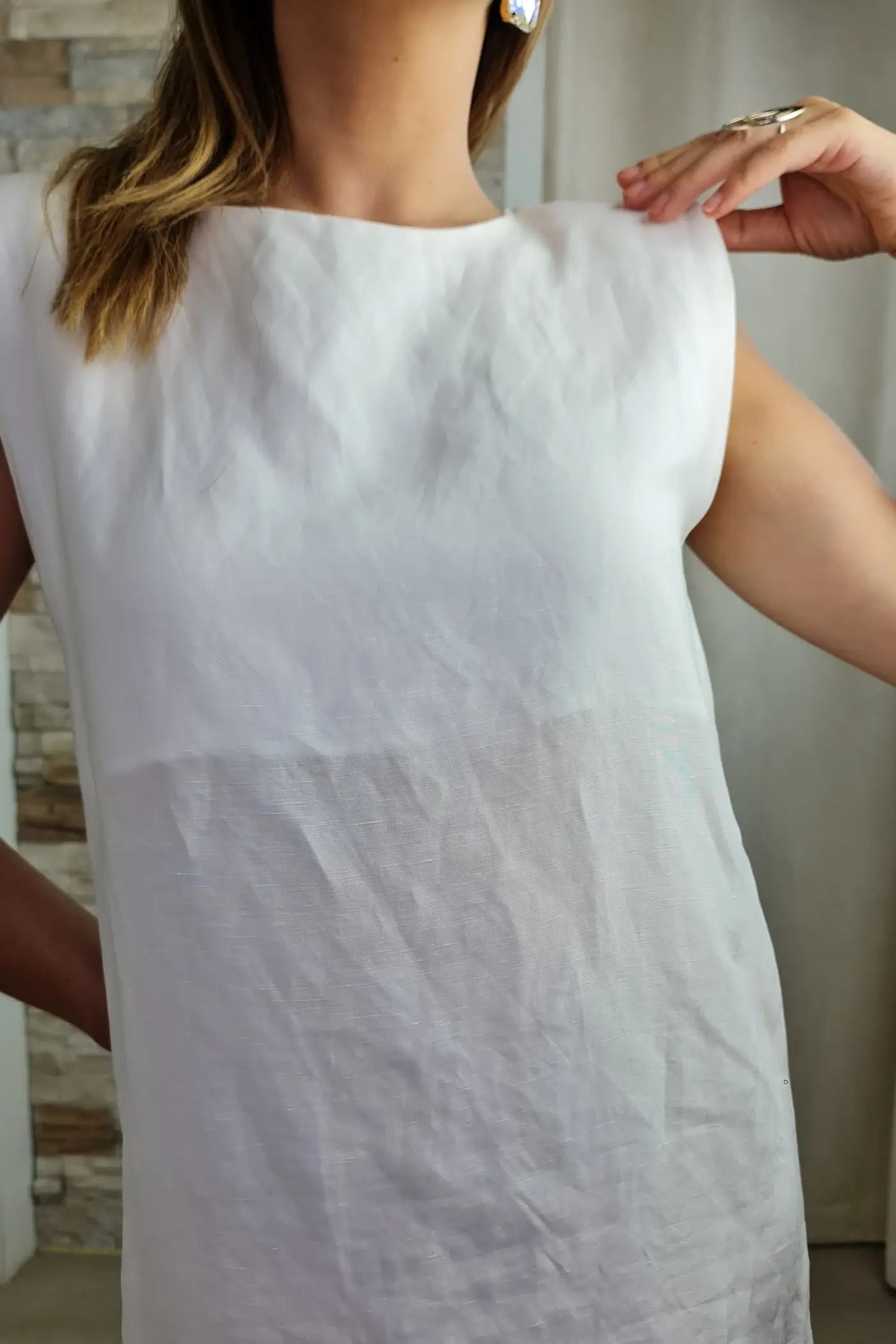 Ao vestir a "Essência Pura", sentirá uma sensação de leveza e um toque de originalidade. O tecido de linho e o caimento solto proporcionam bem-estar e a convidam a expressar a sua personalidade versátil.